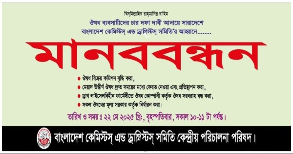আজ বৃহস্পতিবার দুপুর ১২টায় দিনাজপুর প্রেসক্লাবের সামনে সর্বস্তরের শ্রমিক জনতা (১১৬৭) এর আয়োজনে এ মানববন্ধন অনুষ্ঠিত হয়। এতে বিভিন্ন শ্রেণি-পেশার শ্রমিকরা অংশগ্রহণ করেন।